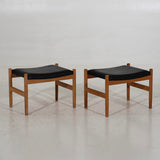 Pair of Danish stools with leather seats, signed, 1960´s.