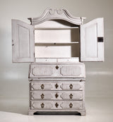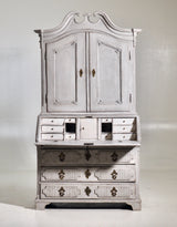 Amazing Scandinavian two-parts bureau, richly carved, circa 1770