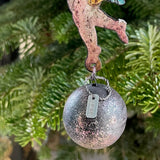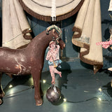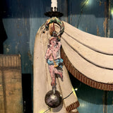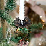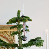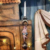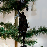 Metal candle holder faun, inspired by an original ornament from 1900, Germany. Both a jester and a helper bringing light to the festivities. Lithographic high quality replica of actual antique ornament.